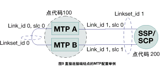 MTP A和MTP B之間的鏈路集的設置方法與任何其它SS7鏈路和鏈路集相同。如果有額外的數(shù)據(jù)設置表明此鏈路與其它連接相鄰節(jié)點的鏈路不同,則應區(qū)別對待。