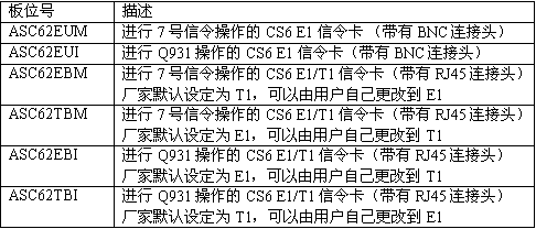 注意(Note):ASC62EBM和ASC62TBM的唯一不同之處就是E1/T1接口選擇模塊的缺省設(shè)置值不同。在兩種型號(hào)的板卡中,用戶都可以通過移動(dòng)模塊來選擇是進(jìn)行E1操作還是進(jìn)行T1操作。